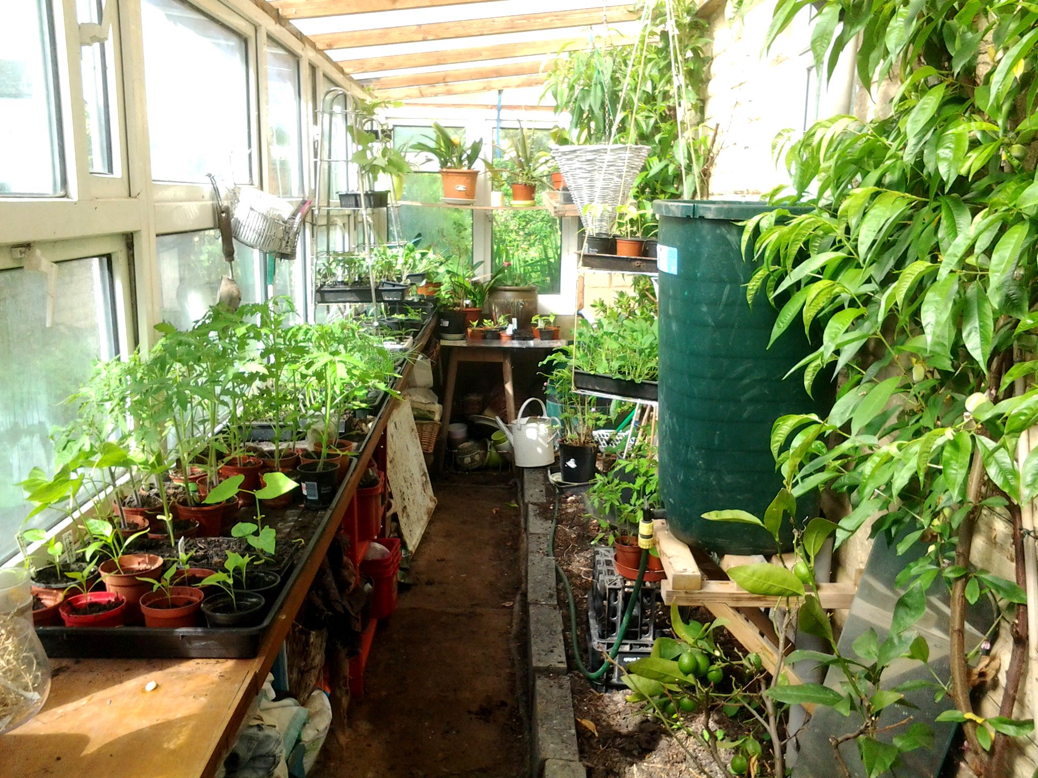 "I wanted to design a system that would capture the wasted solar energy and use the vertical growing space of our mostly windowless south elevation. I also thought that perhaps I could make use of the wasted heat and greywater from the shower on the same side. I desperately needed a space for overwintering plants and starting off early seedlings."